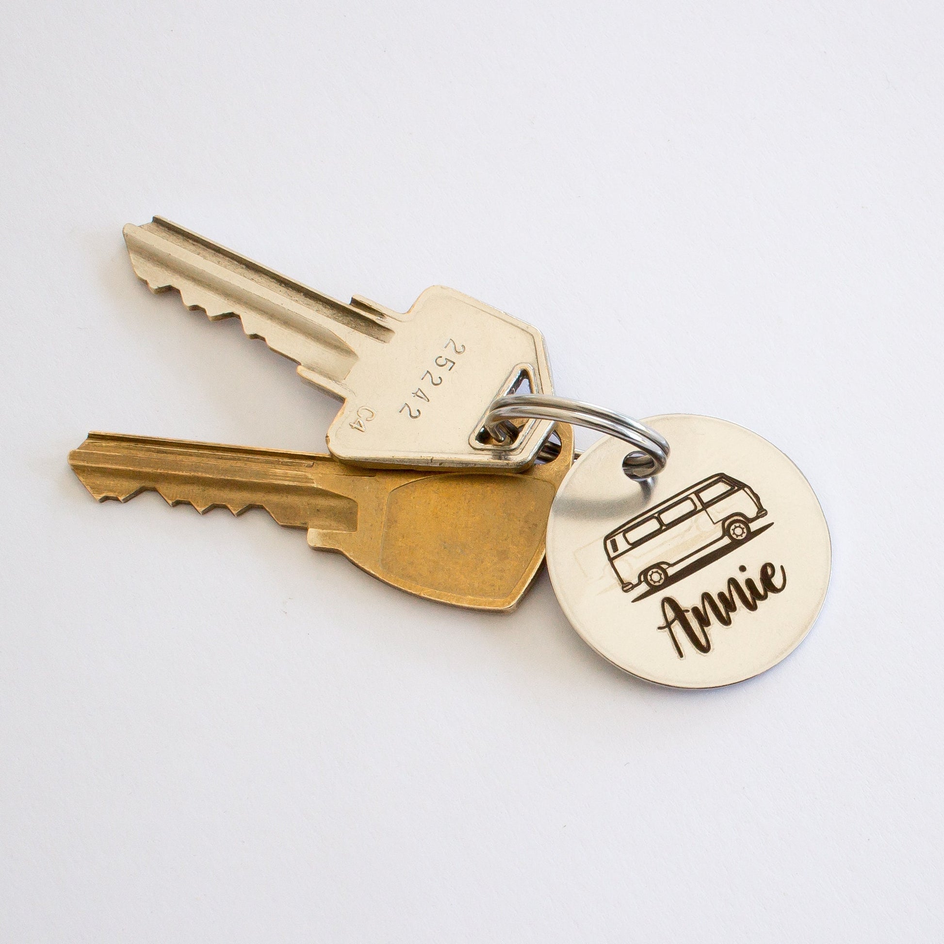 Personalized Kombi Bay Window Camper Key Ring - Silver