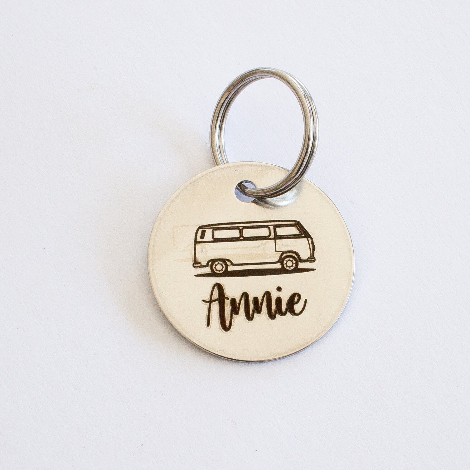 This 70's model bay window Kombi key tag can be customised with your Kombi's name, or your name. Why stop there? Put whatever you want on it! Some ideas are - The Kombi's year, "Bobs Kombi", or perhaps a phone number in case they get lost.