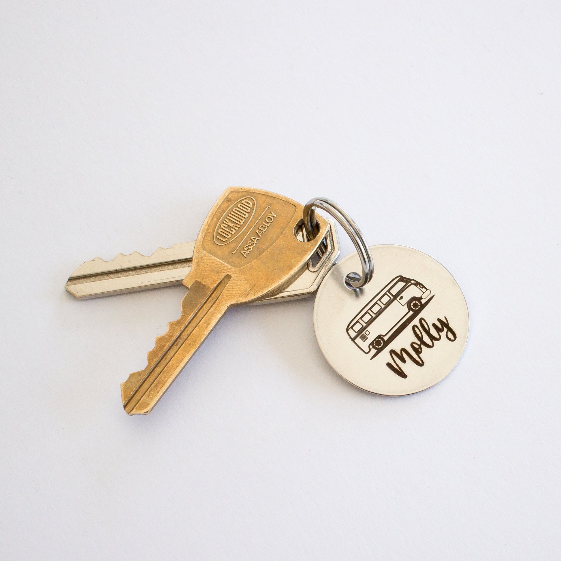 Personalized Kombi Split Window Camper Key Ring - Silver