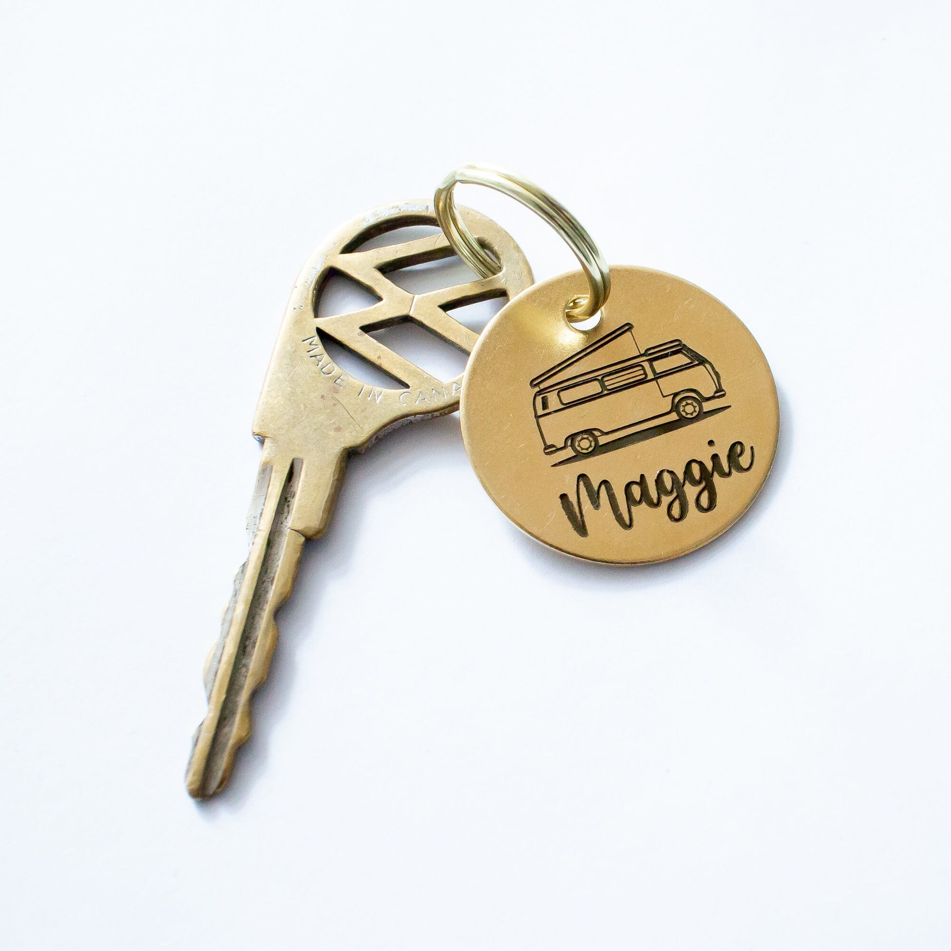 Personalized Kombi Westfalia Camper Key Ring - Gold