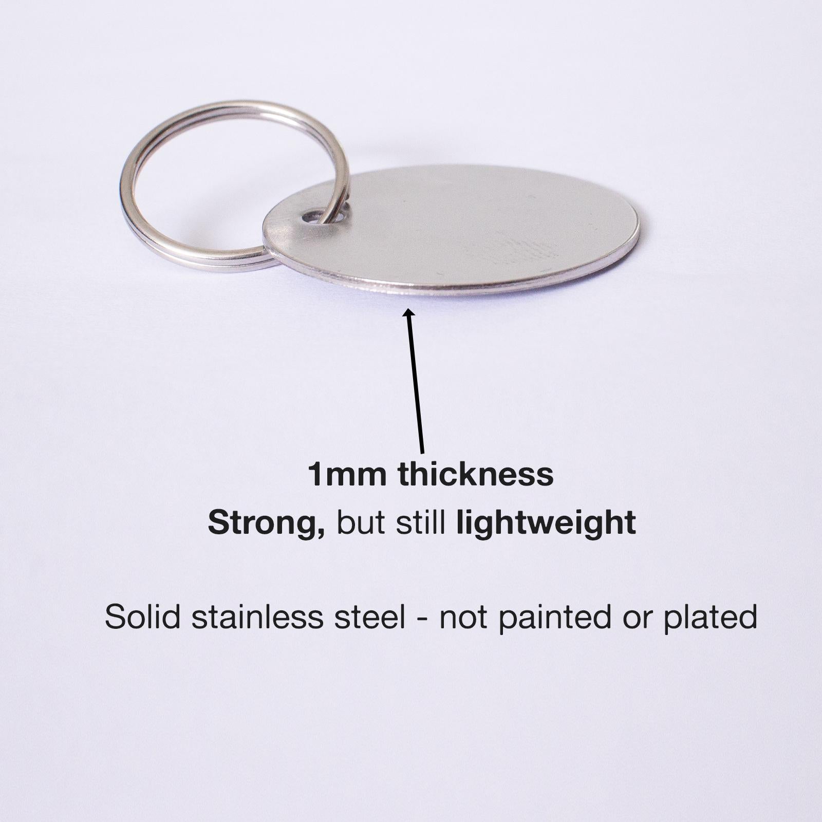 - 20mm stainless steel ring to secure to your animal's collar