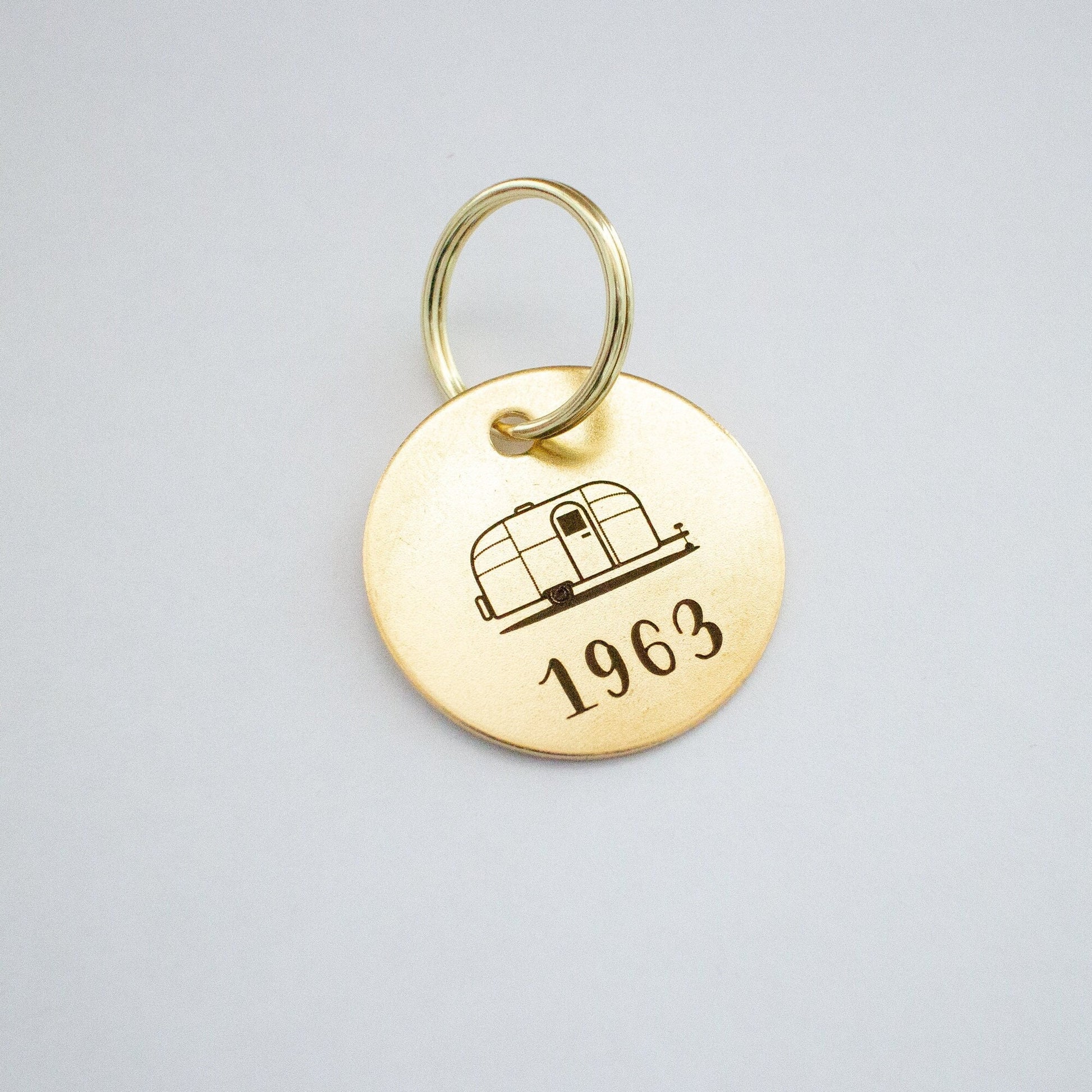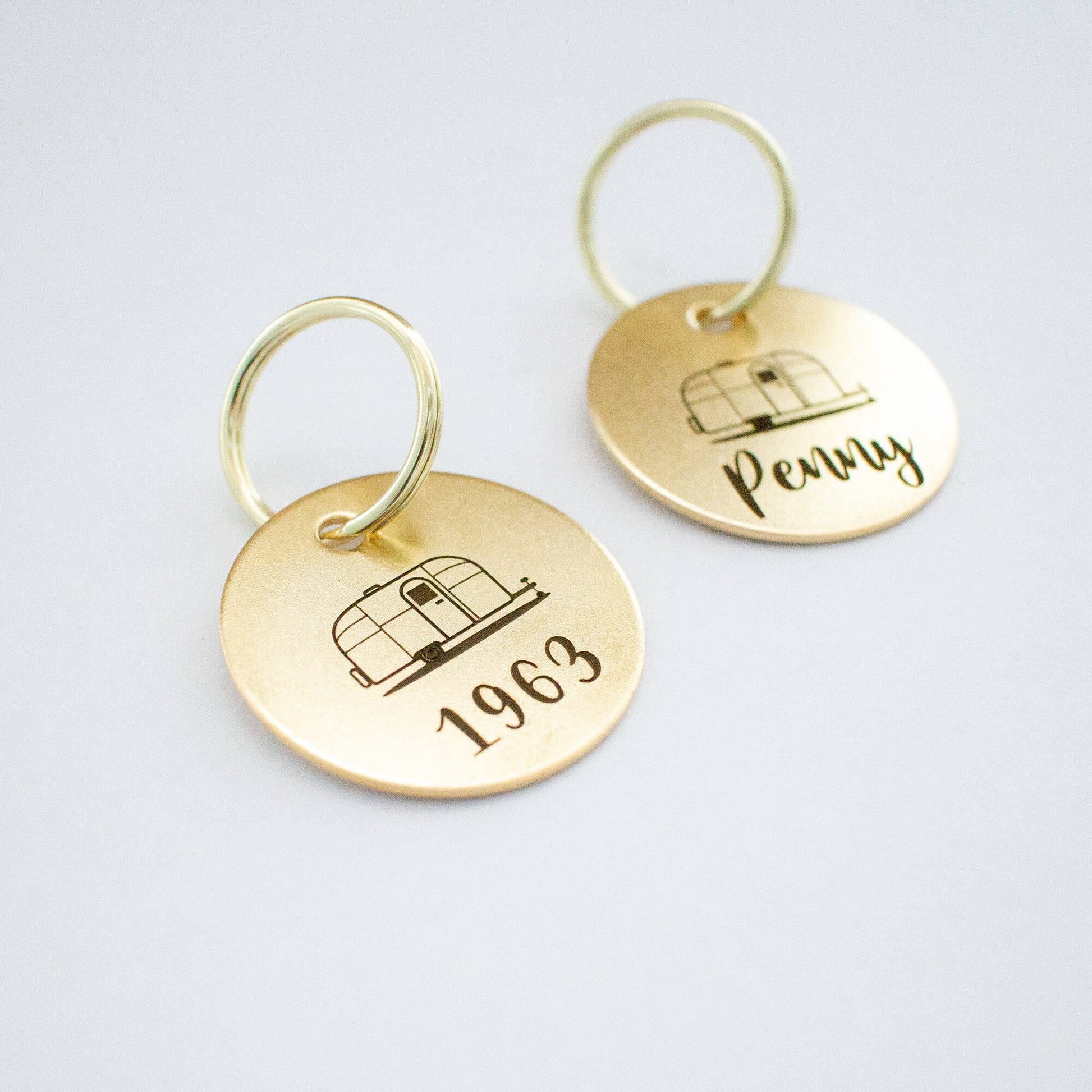 Personalized Vintage Airstream Trailer Key Ring - Gold