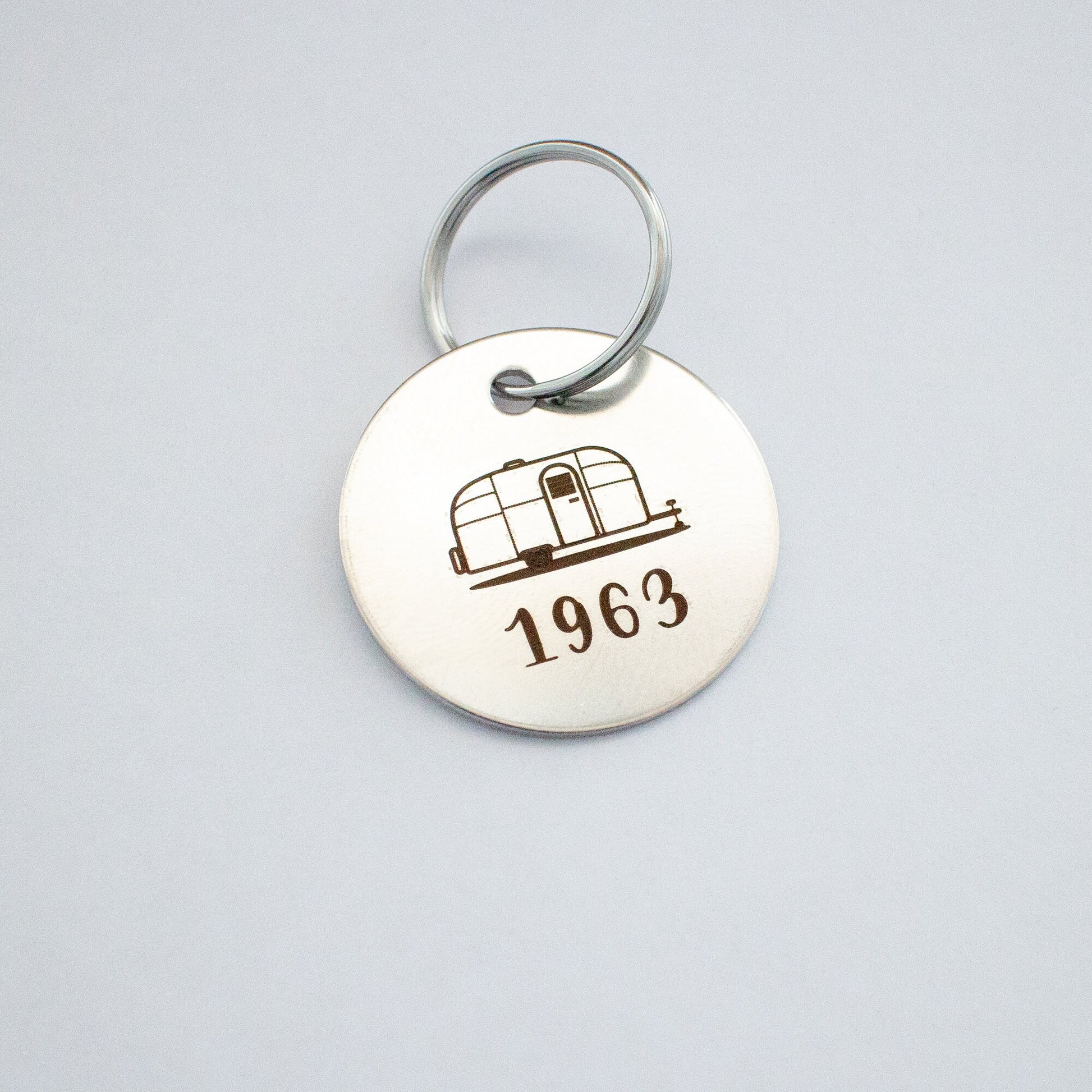 Personalized Vintage Airstream Trailer Key Ring - Silver