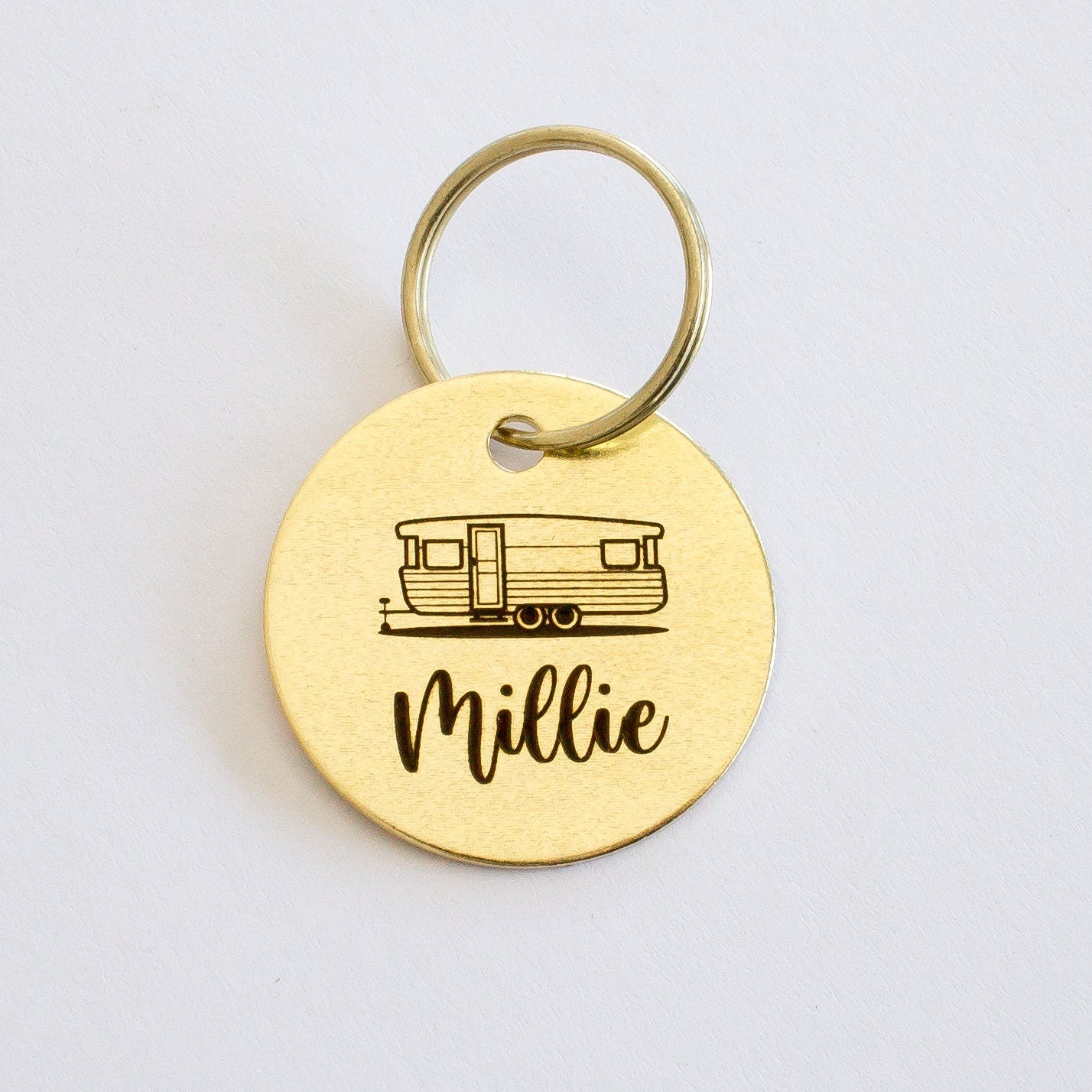 This design is based on a vintage Viscount dual axel caravan with corner windows. This vintage style key tag can be customised with your caravan or trailers name, or your name. Why stop there? Put whatever name you want on it!