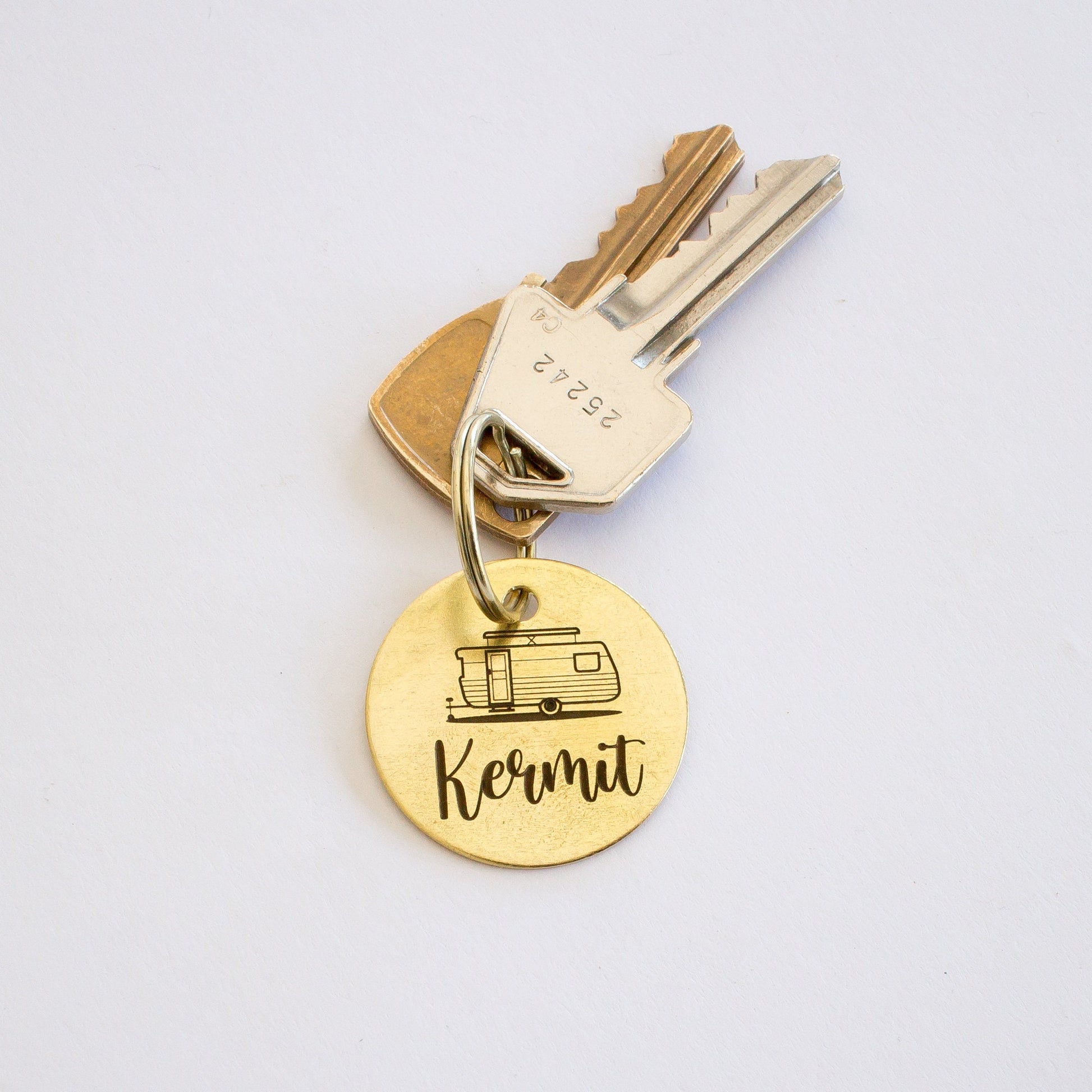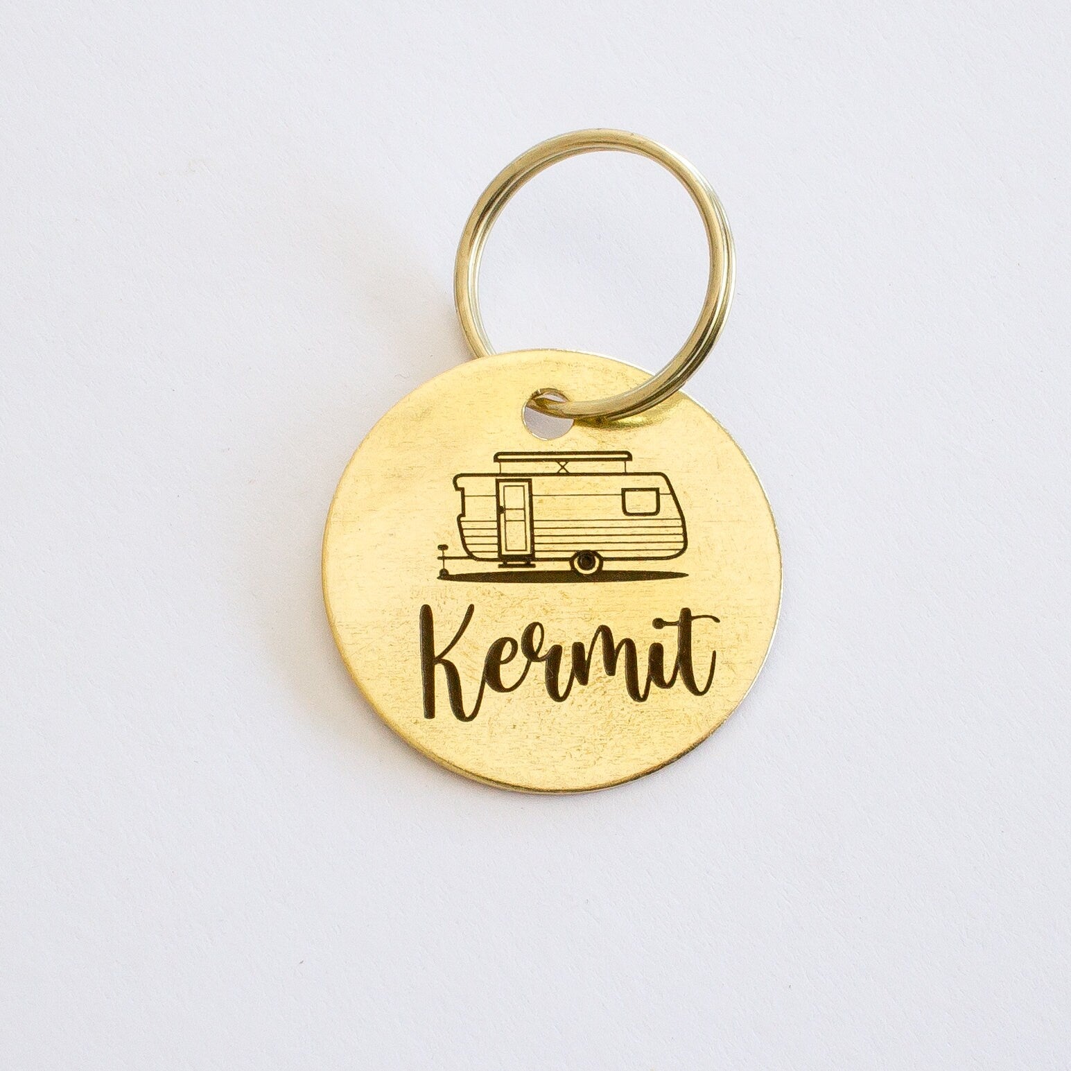 This design is based on a vintage Viscount pop top caravan. This vintage style key tag can be customised with your caravan or trailers name, or your name. Why stop there? Put whatever name you want on it!